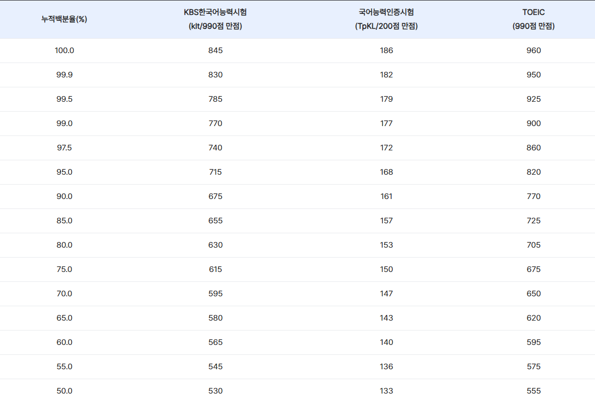 추가로 토익과 국어능력인증시험(TpKL)과의 환산점수표도 올려드릴 테니 관심 있으신 분들은 한번 보시길 바랍니다.