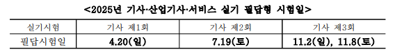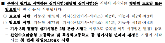 구체적으론 기사, 산업기사, 서비스분야의 제2회 필답형 실기는 토요일에 시행될 예정이며